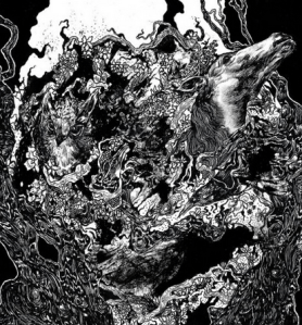 Keenan: Thanks, man. You know what, it’s so crazy. The artist Reuben Sawyer did the cover artwork for Deafheaven‘s first record Roads to Judah. I always loved that record so much. It was quite an influence on me, not so much on our band, but I remember personally just really loving that first offering. I care so much about concepts and words. I loved the title and the way it looked, and reading through the lyrics was very esoteric and bizarre. You didn’t really know what they were saying, but it had a poetry to it, which I loved. It really pulled me in. So yeah, that was a big influence on me in my own personal music journey. I loved the artwork and reached out to Reuben. He was doing a lot of work for some American underground bands around 2010-2011. I threw some concepts at him, and that was it.